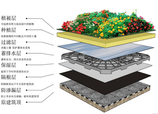 2、种植层:是屋顶种植床结构中的重要组成部分,它不仅工程量大,造价高,而且决定着植物生长的好坏和房屋结构承重,是屋顶绿化建设的关键内容。